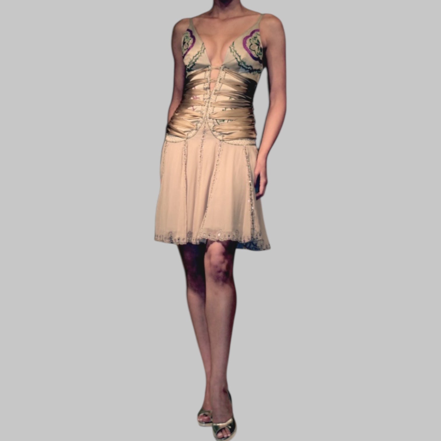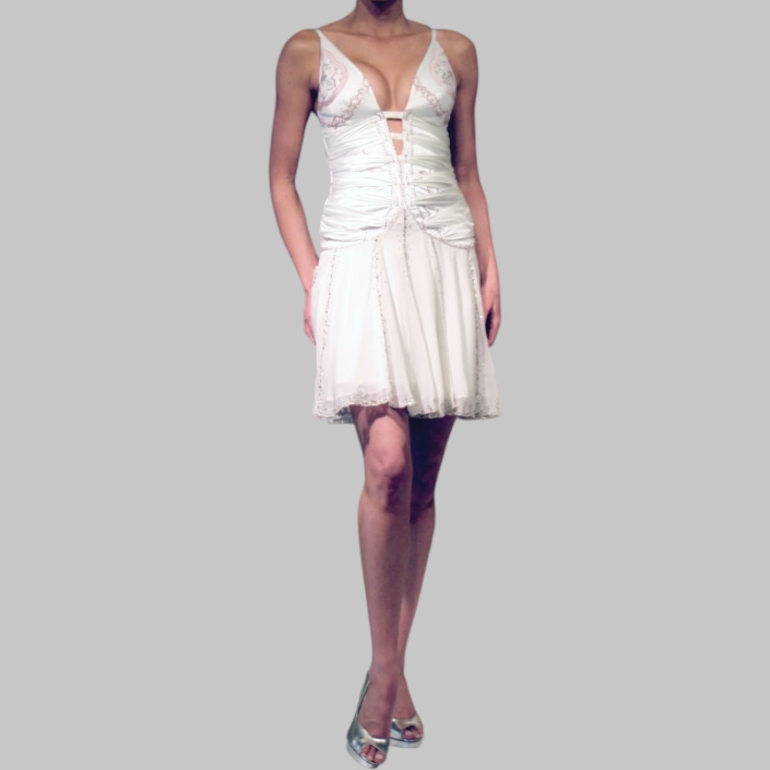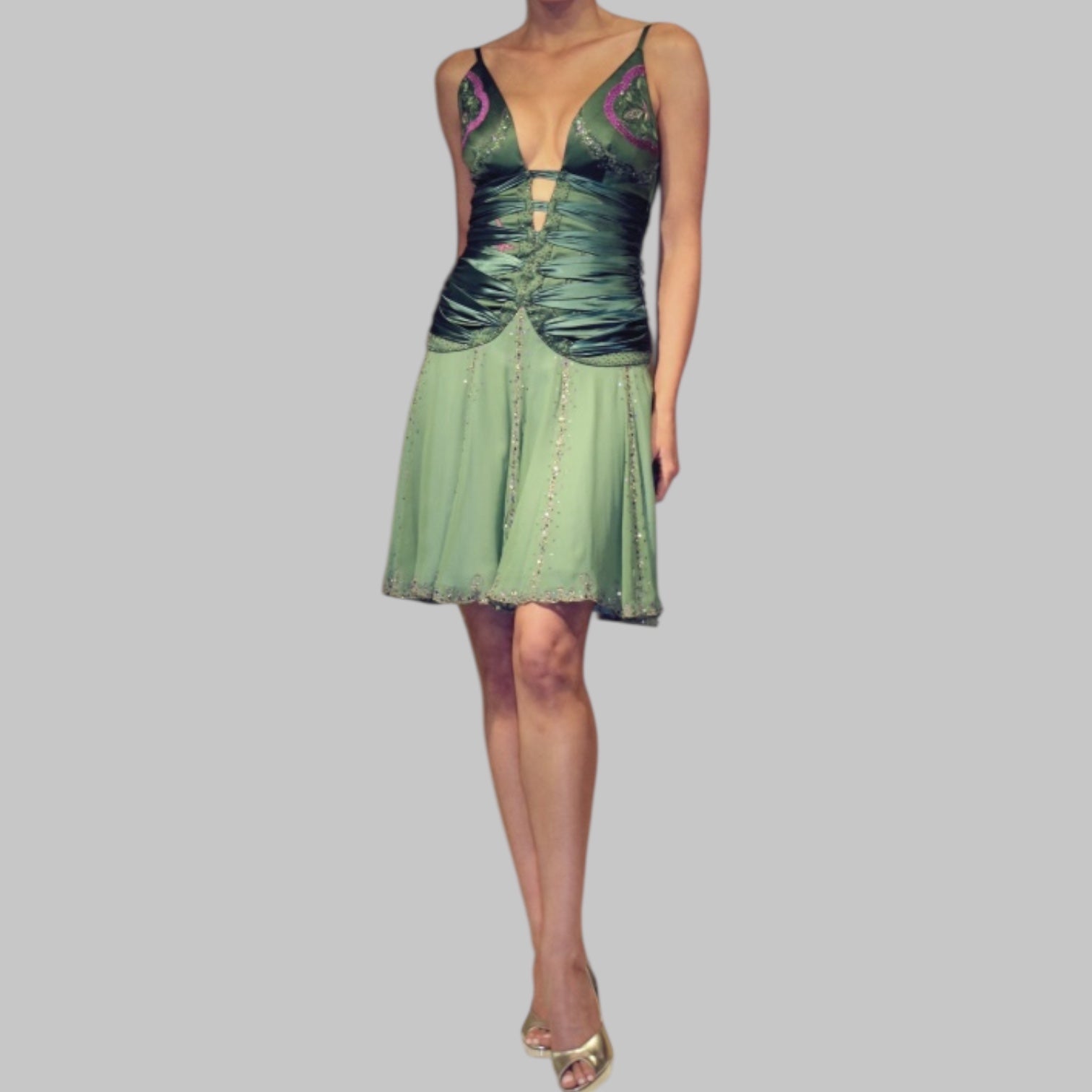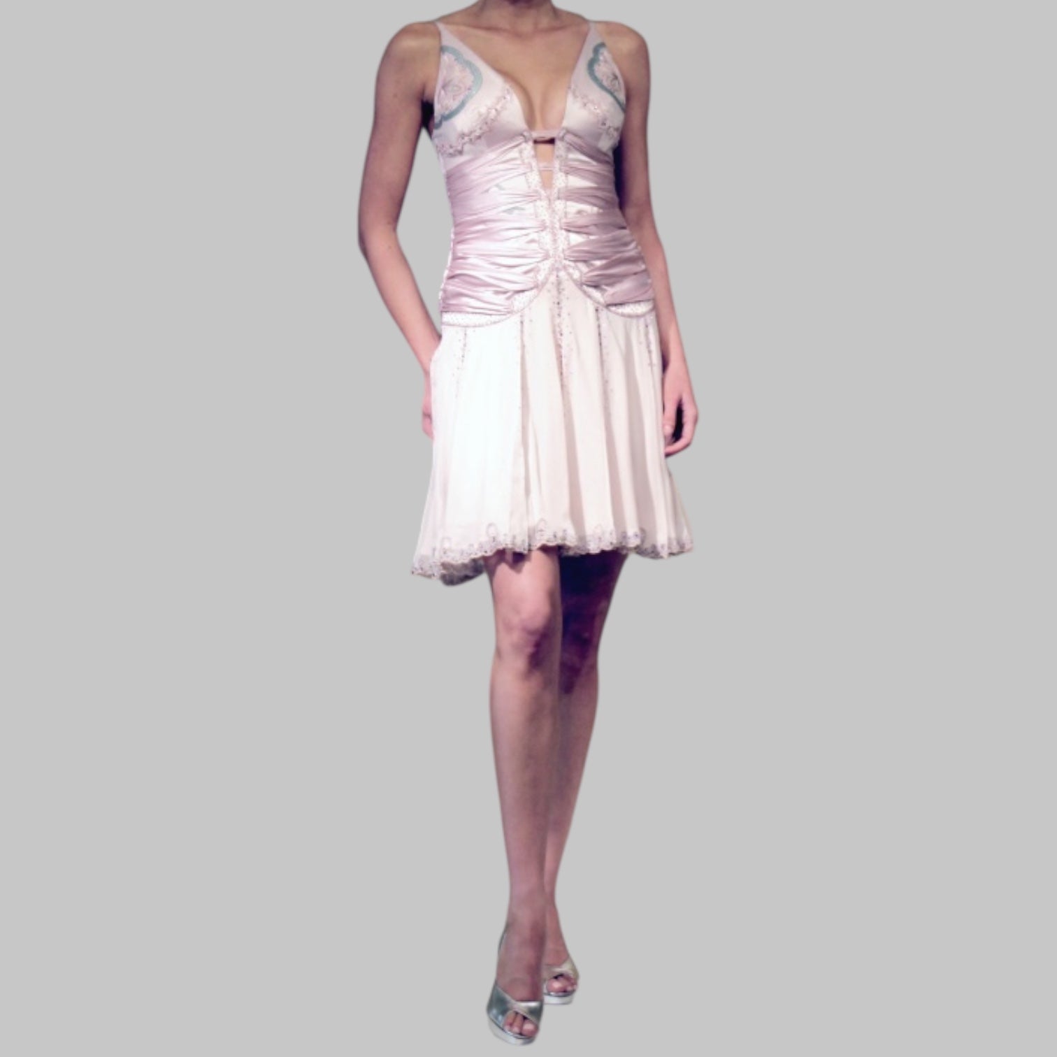 Plunging V-neckline dress with precision construction and meticulous finishing details for elevated style.